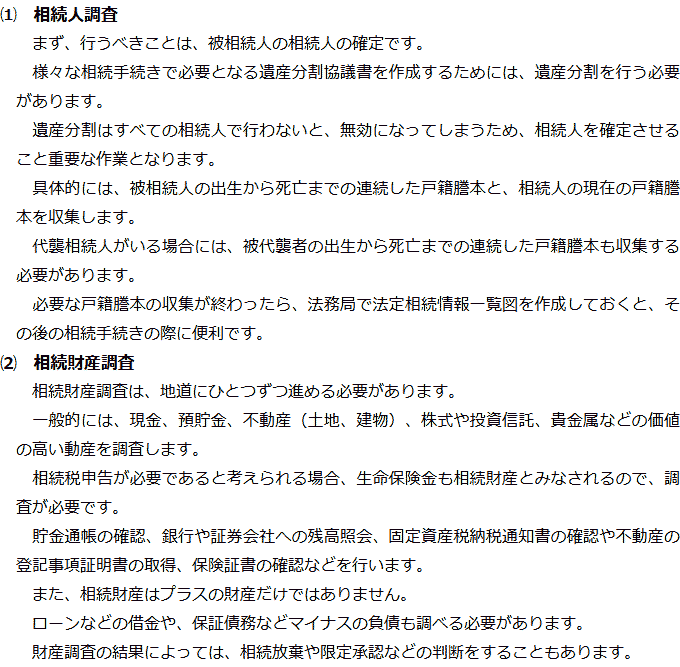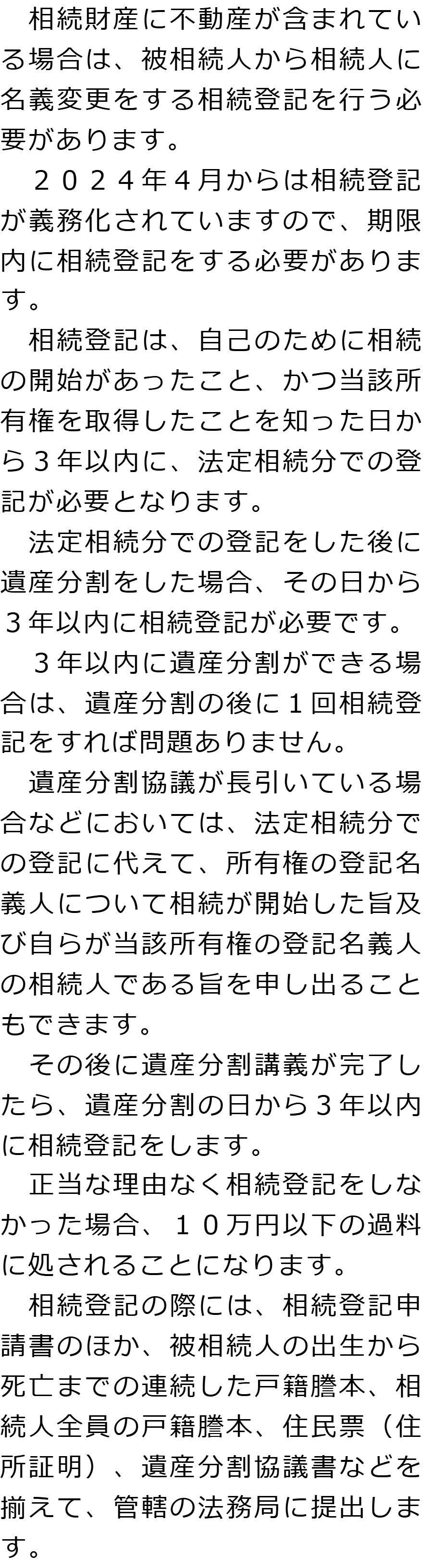 相続手続きの必要事項に関するQ&AQ相続手続きでは何をする必要がありますか?Q相続人調査と相続財産調査では何をする必要がありますか?Q遺産分割では何が必要ですか?Q相続登記はどのような場合に必要ですか?Q相続税申告はどのような場合に必要ですか? Q相続手続きでは何をする必要がありますか?AQ相続人調査と相続財産調査では何をする必要がありますか?AQ遺産分割では何が必要ですか?AQ相続登記はどのような場合に必要ですか?AQ相続税申告はどのような場合に必要ですか?A Q&A(目次)Q&Aトップ相続手続きの必要事項に関するQ&A 受付時間 平日 9時~21時、土日祝 9時~18時 夜間・土日祝の相談も対応します (要予約) 所在地 〒500-8833 岐阜県岐阜市神田町9-4KJビル4F 0120-2403-39 お問合せ・アクセス・地図