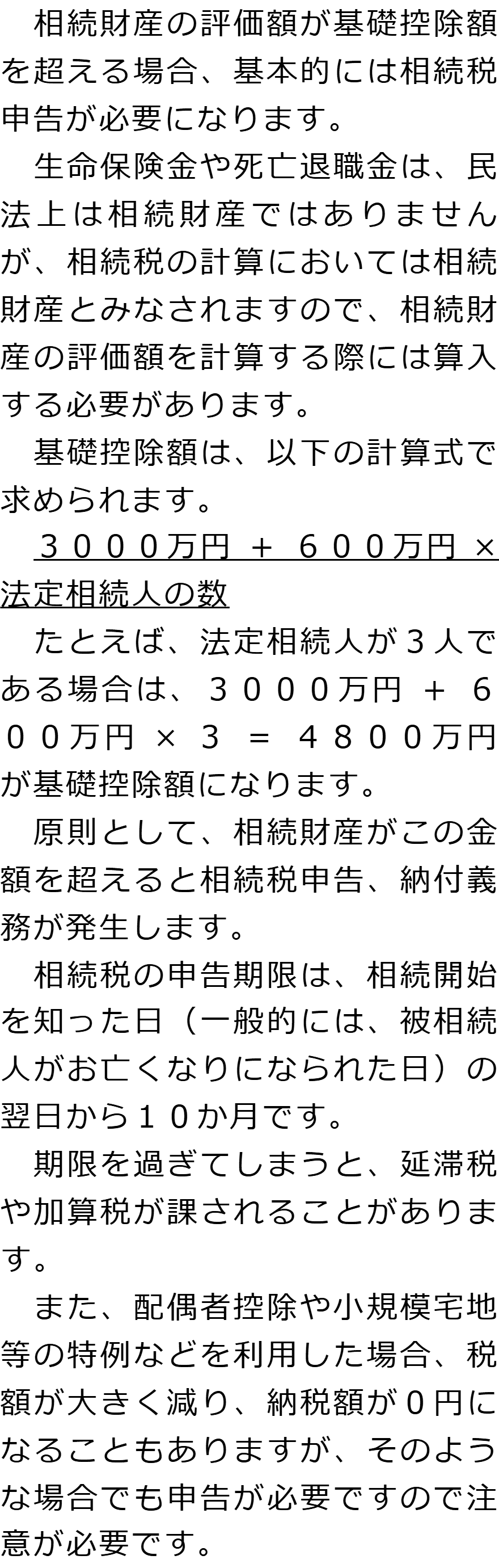 Q相続税申告はどのような場合に必要ですか?A Q&A(目次)Q&Aトップ相続手続きの必要事項に関するQ&A 受付時間 平日 9時~21時、土日祝 9時~18時 夜間・土日祝の相談も対応します (要予約) 所在地 〒500-8833 岐阜県岐阜市神田町9-4KJビル4F 0120-2403-39 お問合せ・アクセス・地図
