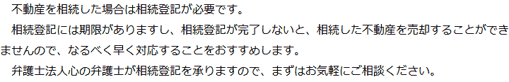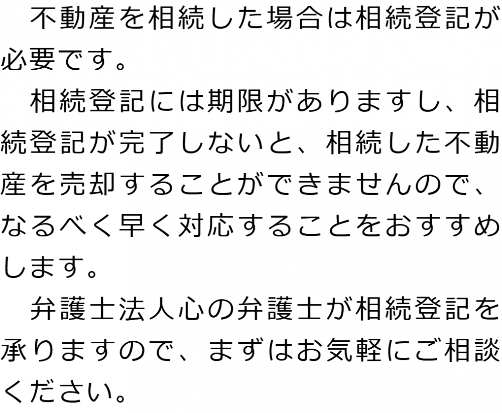 トップ業務内容相続登記 階層構造▼ 業務内容(目次) 相続登記 業務内容(目次)業務内容トップ行政書士法人心の業務内容遺言遺産整理相続人調査相続財産調査遺産分割協議書の作成預金・貯金の解約・名義変更証券口座の解約・名義変更自動車の名義変更心グループのその他の業務内容家族信託・民事信託節税対策事業承継遺言の検認相続放棄限定承認遺産分割遺留分侵害額請求相続登記相続税申告相続税調査 受付時間 平日 9時~21時、土日祝 9時~18時 夜間・土日祝の相談も対応します (要予約) 所在地 〒500-8833 岐阜県岐阜市神田町9-4KJビル4F 0120-2403-39 お問合せ・アクセス・地図